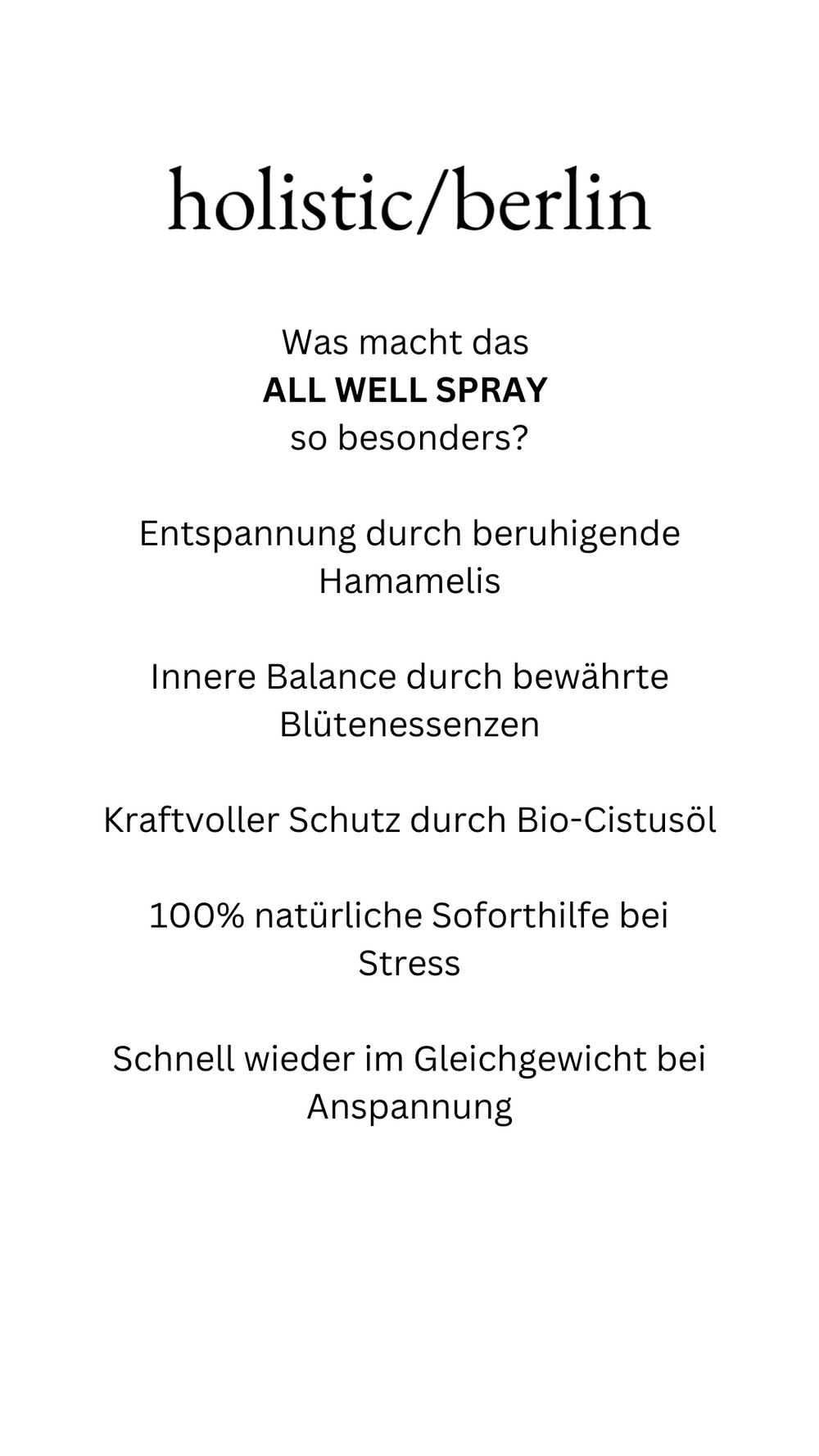 Hinweis: Obwohl das All Well Spray eine wertvolle Unterstützung in emotionalen Situationen sein kann, ersetzt es keine professionelle psychologische oder medizinische Hilfe. Bei anhaltenden emotionalen Problemen solltest du einen Arzt oder Therapeuten konsultieren. Das Spray ist ein naturbelassenes Produkt; Trübungen können auftreten, beeinträchtigen aber nicht die Qualität. Bitte kühl und dunkel lagern und nach Anbruch zügig aufbrauchen.